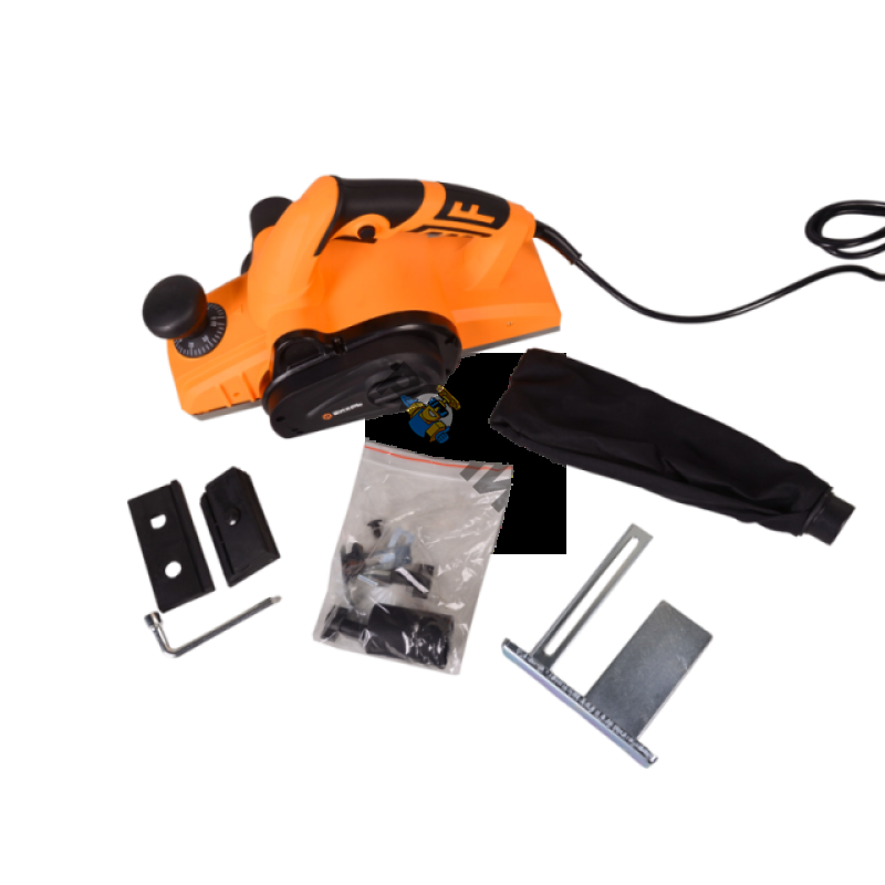 | Комплектация | Паспорт изделия, Боковой ограничитель (упор) с ключом, Ограничитель глубины строгания, Ключ для замены лезвий |