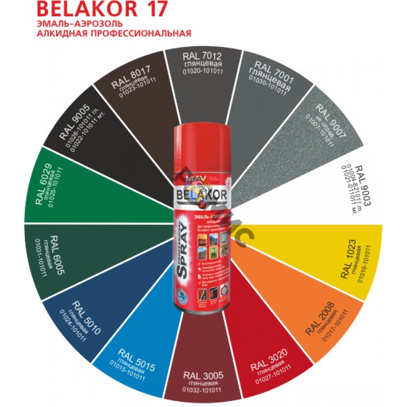 Теги: краска, эмаль, аэрозоль, универсальная, RAL 1023, желтый, транспортный, глянцевый, Belakor 17, алкидная, профессиональная, 520 мл, 01016-101011, ш/к 4810335127671, РБ