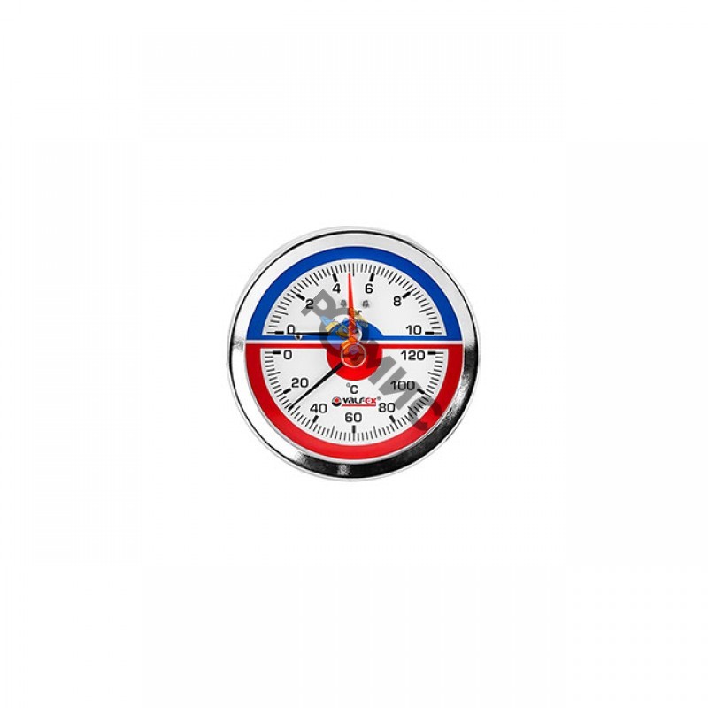Термоманометр аксиальный (задн. подкл.) с контрольной стрелкой, 63мм, 1/2", 16 бар, 120 С VALFEX (100), Китай4803